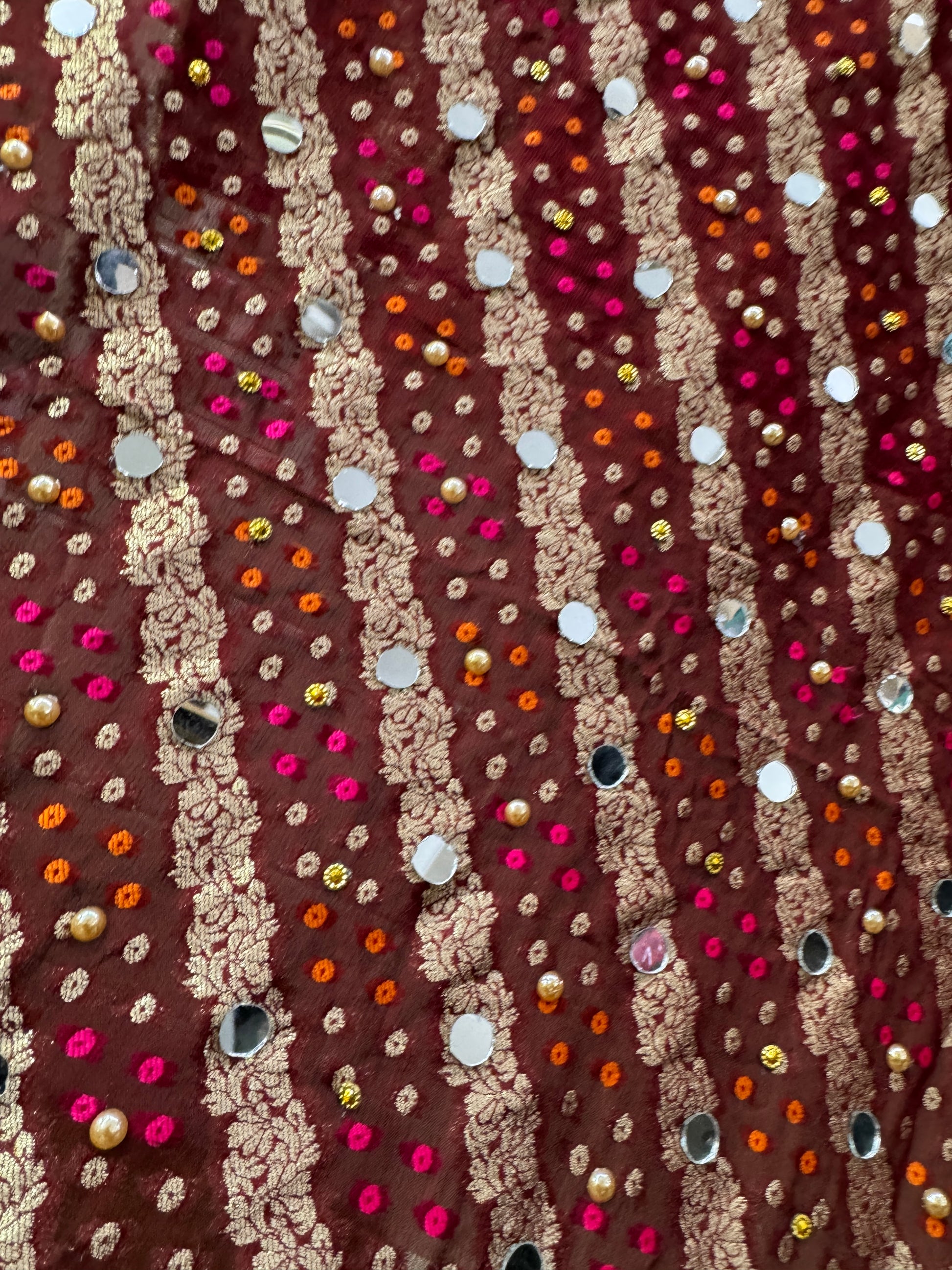 Maroon Banarasi Georgette Dupatta with Mirror & Stone Work – Festive & Wedding Wear