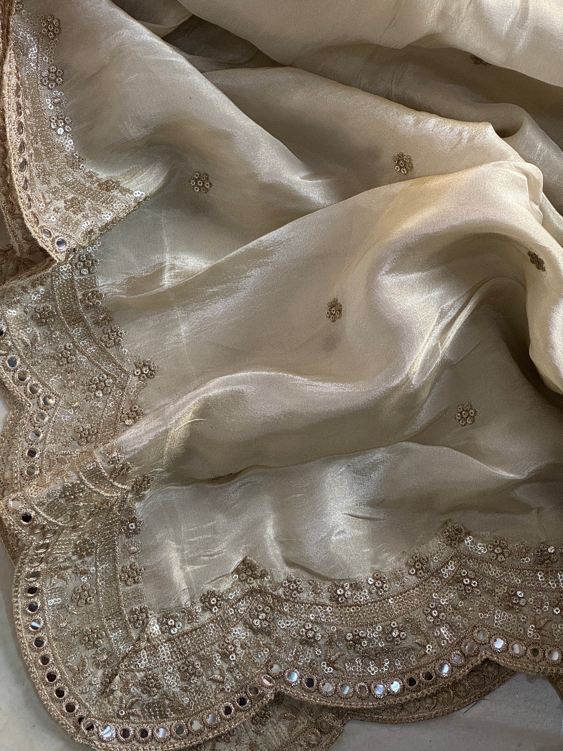 Whether you're styling for a wedding, festive celebration, or everyday elegance, this tissue mirror work dupatta is the perfect finishing touch to your look